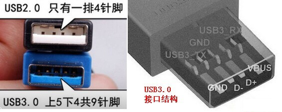 在兼容USB 2.04個引腳基礎(chǔ)上,USB 3.0加入了5個全新引腳,除了一個電源接地引腳外,是2對分別負(fù)責(zé)讀取和寫入的引腳RX+RX-TX+TX-。另外USB 3.0的供電能力相對USB 2.0500mA提升到了900mAh。在速度上的體現(xiàn)則是USB 3.0的速度達到了5Gbps,與PCSATA3接口的6Gbps僅差20%